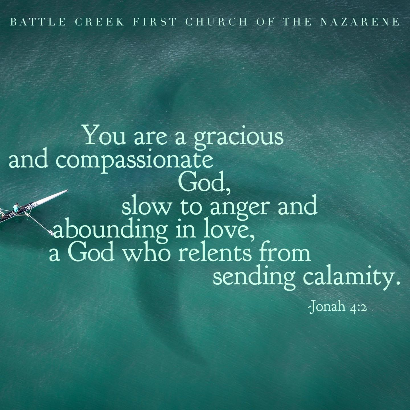 I knew that you are a gracious and compassionate God, slow to anger and abounding in love, a God who relents from sending calamity.
