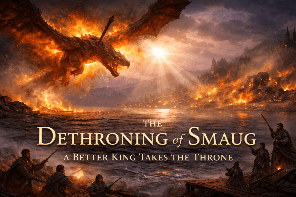 The story does not end with Smaug’s death. It points forward to a greater dethroning; the replacement of false kings with the King who reigns forever.